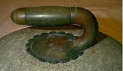 Ez a műanyag nyél a kő tengelyénél, a lyuk belsejében folytatódik, egészen az aljáig, egyfajta patentként erősítve a kőhöz. A fúrás és a benne levő fogantyúrögzítés négyzetes (hasáb) alakú, természetesen a nyél kövön belüli elpörgésének megakadályozása érdekében. Ha felfordítunk egy követ, látható ez a szép jellegzetesség. Fontos részlet, hogy a kőnek belül van egy kisebb, saját anyagából faragott ágya, melyet felülről kap, a nyél takarásában. Ugyanis ez a fogantyú közvetlenül nem érintkezhet a külső kőgyűrűvel. A fogantyú értelemszerűen két féle színű lehet, ami általában piros és sárga, de találkozhatunk még kékkel, fehérrel. A ponttáblázaton a két csapat - nemzet - neve ugyanolyan színben szerepel, amilyen kővel játszik: ez a "mez". A professzionális játékosok eredményei nagyban múlnak a mai köveken - edzett, rugalmas, magasan fényezett gránit, ami egy készleten belül megegyezik párjaival színben, alakban és súlyban. Tudni kell még egy fontos dologról: a követ, bármilyen kiváló minőségű is, minimum 20 perccel a játék vagy edzés előtt ki kell tenni a jégre, hogy lehűljön – különben kettétörhet…