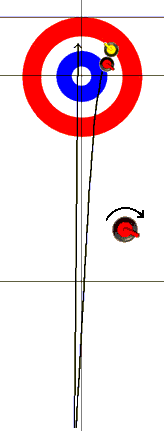 A skip úgy fogja kérni a söprést, ahogyan alkalmasnak találja. (Tapasztalt csapatoknál a söprők határoznak.) A söprők törekedhetnek arra, hogy megbecsüljék a kő csúszási "súlyát" (sebességét, lendületét), és ennek megfelelően reagáljanak. A kő tehát elindult önálló útján. Elengedése közben a dobó igyekszik valamelyik irányba lassú pörgésre indítani a követ - innen ered a curling (csavarodás) elnevezés -, az olvasó által egyenesnek vélt csúszás emiatt görbül egy nagy ívvé. Ebben a söprögetők is aktívan részt vesznek. Az ív görbületét (curve) a kő alján levő homorú bemélyedés segíti, de függ a jég minőségétől és a kő taktikai sebességétől is. A görbület több, akár 4 méteres is lehet, ez a big curve, ha egy méternél kevesebb, small curve-nek nevezik. Ez teszi a curlinget érdekessé és izgalmassá. Hogyan lehet ezt a rotációt kivitelezni? Képzeld el, hogy autót vezetsz. Először a skip söprűje felé kezded irányítani, aztán lassan arra kanyarodsz, ahová először jelzett a kapitány. A kormánykerék maga a kő: a fogantyú vége feléd mutat, töve 10 óra vagy 2 óra irányába néz (skiptől függ). Elengedése előtt "vidd fel" 12 órára, majd könnyedén fordítsd tovább. Amelyik kezében tartja söprűjét a skip, arra álljon neked a nyél vége, persze tükörszerűen (szemben áll: pl. bal keze esetén 10 órára állítsd a köved), és a másik kezével mutatja a pörgési irányt, vagyis te magyad előtt fogod eltekerni a fogantyút. Az ívvel mindenképpen számolni kell, kiküszöbölése nagyobb feladat. A "rombolás" kivétel: ilyenkor jóval nagyobb a kő sebessége, mint általában, hogy biztos legyen a kiütés. De pont a sebesség miatt a kövek ilyenkor mindig keresztülcsúsznak a házon. Az ív nagy taktikai segítség is lehet, például ha az egyik kijjebb álló saját kő mögé "besöpörnek" egy másikat, azt az ellenfél csak több dobás elvesztegetésével "szedheti ki".
