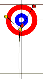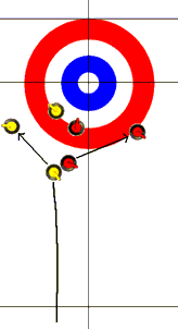 4. Stratégia (Bővítése folyamatban...) A követ többféleképpen is ki lehet játszani. Ezek kombinációjából jön létre a stratégia, ami egy sakkjátszma bonyolultságához hasonlítható. Olykor úgy is nevezik a curlinget, hogy "chess on ice", vagyis: sakk a jégen. Alapvető taktikai fogásnak számít, hogy ha a sorsolás (toss) szerint mi kezdtük a játékot, akkor arra törekszünk, hogy 1-0-ra, vagyis épphogy elveszítsük az endet. Ez vonatkozik a többi hasonló helyzetű endre is. Ilyen esetekben a free guard zone területének középső sávjába, a center guardba helyezzük első köveinket (3 vagy 4), amit a fgz szabály nem enged elmozdítani, tehát a ház "fokozottan védetté" válik. Ellenfelünknek több saját kövét el kell használnia a guardok későbbi kiütésére, de utolsó kövét kihasználva nyerhet. Ezzel a két csapat közötti pontkülönbség nem lesz jelentős, viszont megszereztük a következő end befejezésének jogát, ami, mint tudjuk, döntő fontosságú lehet. Abban az esetben, ha ez sikerült, első néhány kövünket ismét érdemes védelemre használnuk, de nem a center guardban, hanem a két oldalsó sávban, a corner guardban. Így több csata folyhat a házban, utolsó kövünkkel - ha jól taktikázunk - legalább 2-0-ra nyerjük meg az endet. Az évszázadok során mindegyik formáció kapott egy rövid elnevezést. A továbbiakban láthatsz néhányat ezek közül általam magyarítva és "modellezve".