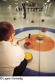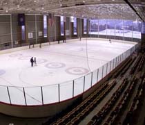 Sima jég. Mármint tükörsima, szigorúan vízszintes, hófehér jégpálya. Desztillált vízből készül, aminek megvan az a komoly előnye, hogy a fagyástól kikristályosodott ásványi sóréteg nem akadályozza a szabad csúszást - nagyjából négyszer sebesebb. Ez olyan sokat számít, hogy „sima” hokipályán versenyszinten nem is érdemes gyakorolni… Elég egy hajszál, rög vagy egyéb por-szennyeződés és a kő centiméterekkel eltérhet jól megtervezett (és jól is kivitelezett) céljától. Az is előfordul, hogy egyszerűen lecsúszik a pályáról. Vegytiszta jégen a pörgés (curl) is folyamatos, vagyis sokkal inkább kiszámítható és irányítható. A jég hőmérséklete -4 °C, vastagsága 1.5-2 cm. A csarnok légterének is megadott, állandó szinten tartott hőmérséklete van: közvetlenül a jég fölött fagypont körüli, mellmagasságban (150 cm) max. 6 °C-os az „idő”.
